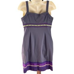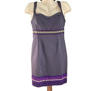 BODEN Pinafore Apron Shift Dress With Ribbon Trim Gray And Purple Size 8P