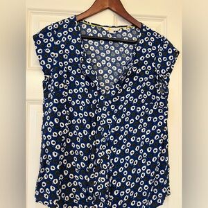 BODEN Pleat Front Keyhole Blouse Top Blue Floral Flower Print Cap Sleeve Size 8