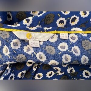 BODEN Pleat Front Keyhole Blouse Top Blue Floral Flower Print Cap Sleeve
