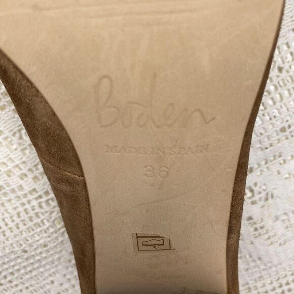 BODEN Pumps Suede Square Toe Block Heel Chunky Heels Womens 5.5 36 Tan Brown