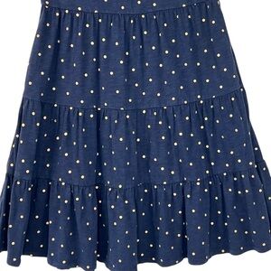 BODEN Romaine Metallic Polka Dot Tiered Jersey Dress Sz 2 Navy Blue Gold preppy