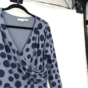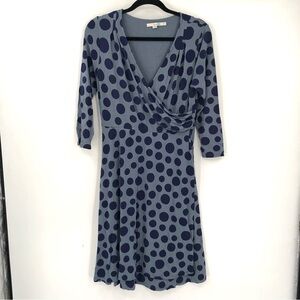 BODEN Roseberry Dress Polka Dot Faux Wrap Stretch Jersey Blue Dots 12 Women