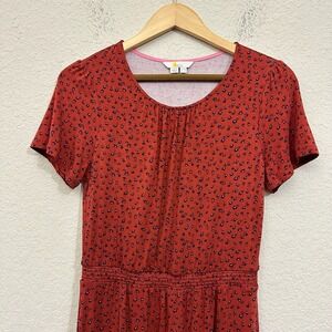 BODEN S/S Evangeline Jersey Knee-Length Dress Dark Red Ditsy Petal Print US 6R W8060