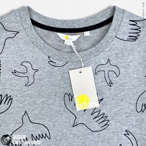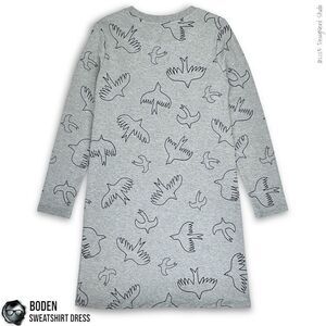 BODEN SWEATSHIRT DRESS IN GREY MARL WITH FLYING DOVES PRINT COTTON LONG SLEEVE