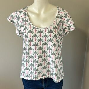 BODEN Scoop Flutter Sleeve T Shirt Palm Tree White Top Short Sleeve Size 12