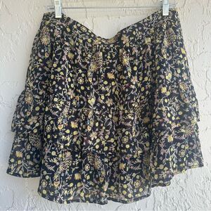 BODEN Skirt Women 14 Ruffle Tiered Black Wildflower