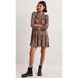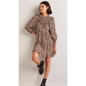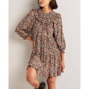 BODEN Smocked Ruffle Yoke Tiered Dress 3/4 Sleeve Ditsy Floral Cottagecore