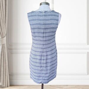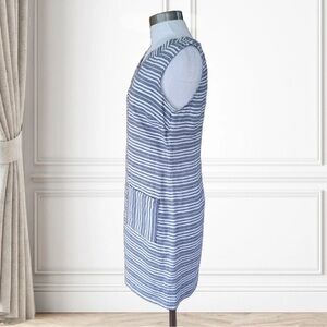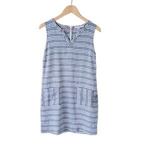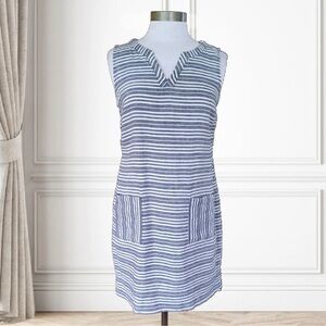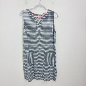 BODEN Striped Tunic Sleeveless Shift Dress Blue Linen with Pockets US 10R UK 14R