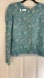 BODEN WAVE PRINT COTTON KNIT CROPPED CARDIGAN SWEATER TURQUOISE BLU WHI SIZE M