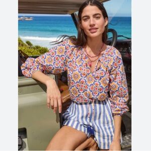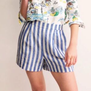 BODEN WOMENS HAMPSTEAD 100% LINEN HIGH RISE SHORTS BLUE WHITE STRIPE SIZE 2