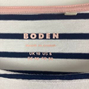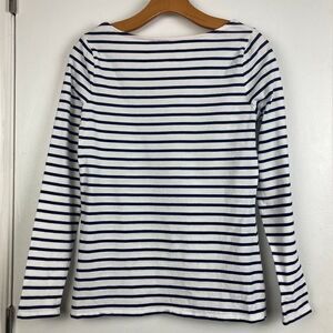 BODEN White Navy Striped Round Neck Long Sleeve Tee 100% Cotton Nautical sz 6 US