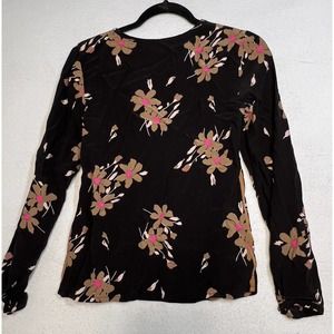 BODEN Women Top Size 4 Black Brown Pink Floral Keyhole Blouse Long Sleeve