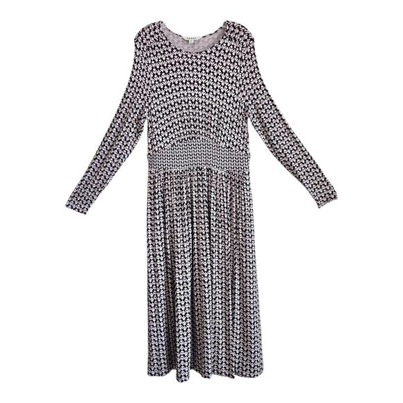 BODEN Women's 10 Thea Dress Pink Black Geometric Midi Long Sleeve Jersey Knit