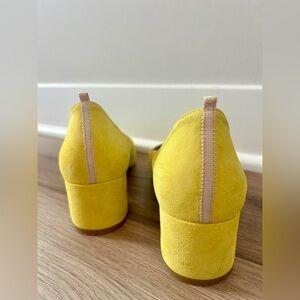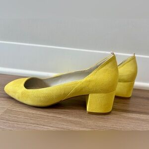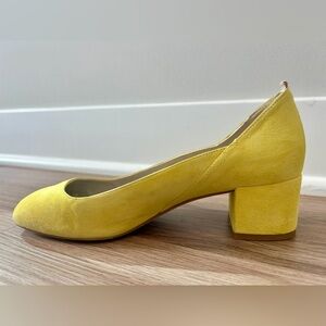 BODEN Yellow Suede Mid Heel Court Ladies Pump Size 37 (6.5 US) Block Chunky