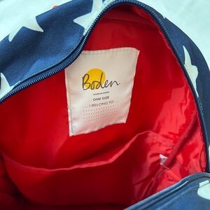 BODEN dragon navy backpack, green white stars - charming, playful, whimsical
