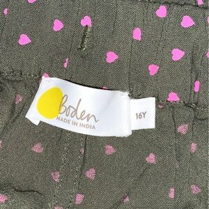 BODEN girls size 16y XL drawstring lose fit jogger pants green pink hearts belt