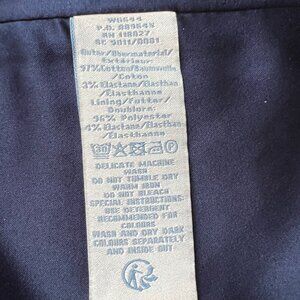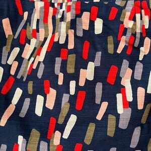 Boden pencil summer skirt in a slightly structured cotton fabric (97% cotton, 3% elasthan), Navy with a 'paintbrush' pattern in red, cream, peach, brown. Fully lined in navy, concealed zipper at back. Length from waist to seam approx 23.5 inches. Hardly worn.