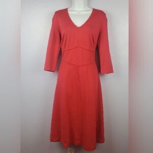 Boden Women’s Bryony Dress Size 10L Fit & Flare Ponti Knit 3/4 Sleeve dress in Coral color. Lined.