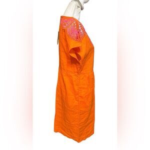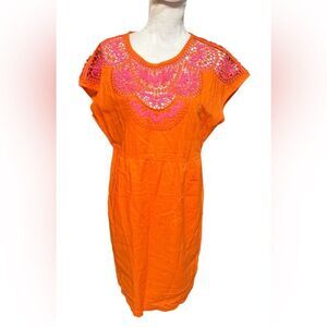 BODEN Fleur Embroidered Linen Dress with Pockets-US Size 8L Orange and Pink