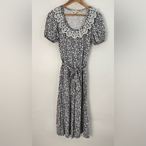 BODEN US 2R Trim Detail Jersey Midi Dress navy blue floral 0521