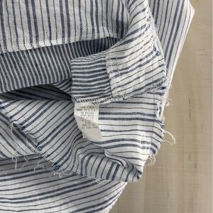 BODIL striped patchwork pocket tunic top blouse lagenlook linen blue XL art work