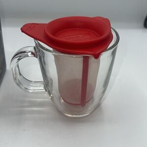 New in box! 10 fl Oz glass mug with red tea infuser.