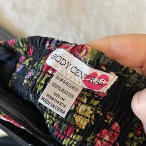 BODY CENTRAL Black Multicolored Floral Tiered Strapless Mini Dress 90’s Theme MD. EUC. No straps. No belt - loops removed.
