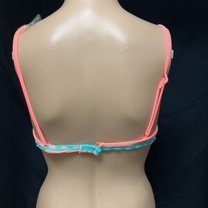 Body Glove bikini top size Medium, single hook closure front is like an aqua with holes showing through to a coral back, enhancement pads sewn in