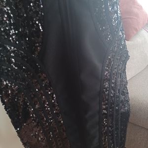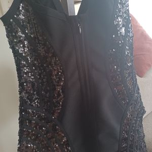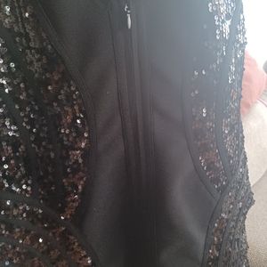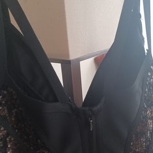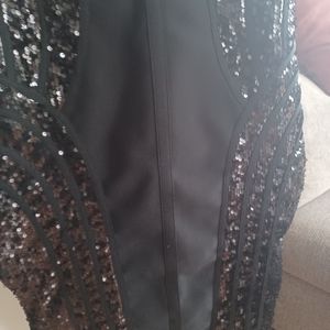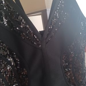 black BODYCON dress v neck line black sequence front and back ,little black zipper along the backside size XL