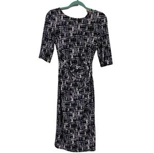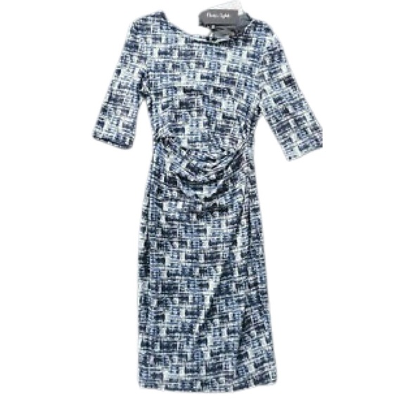 Blue checked dress knee length hem and 3/4 sleeves