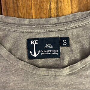 This now defunct Norwegian company is responsible for one of the comfiest tees I've ever had. It's sized as a small, but fits as a slim medium. The color is hard to put my finger on, but somewhere between grey and brown. Taupe?