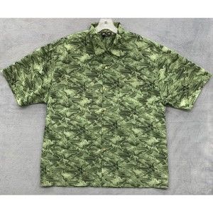 BOFF Button Down Shirt Men's Size XL Green Short Sleeve Geometric 100% Polyester