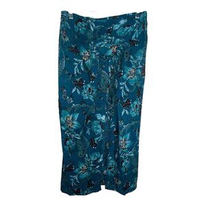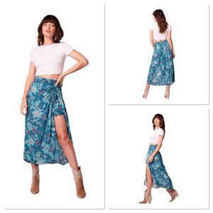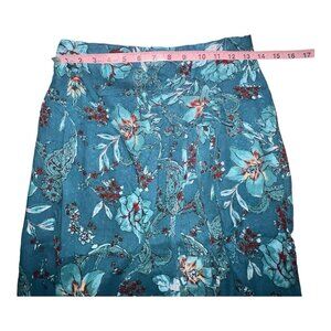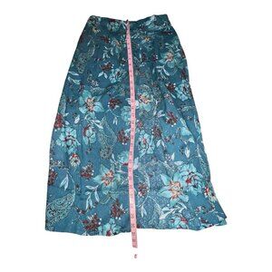 BOG Band of the Free Celene Deep Teal Floral Midi Skirt Medium Front Slit Lined