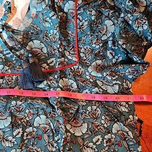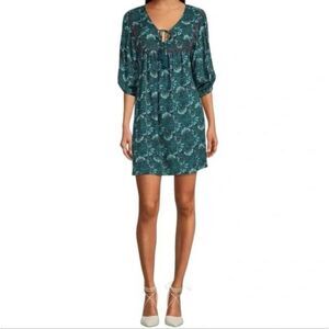 NEW Band of the Free (BOG Collective) Bohemian Mallory Floral Sheath 1/2 Sleeve Mini Dress, Small, Deep Teal Aqua & White in New with tags condition.