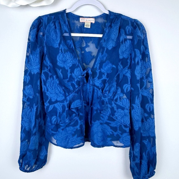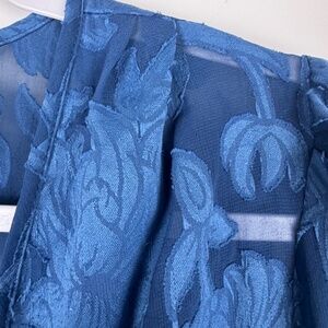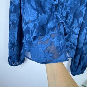 B-O-G COLLECTIVE Bright Blue Floral Semi Sheer Ruffles Top / Size Small