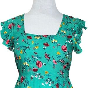 BOG COLLECTIVE LOTTIE & HOLLY GREEN PINK FLORAL MINI DRESS SIZE MEDI TIERED NWT