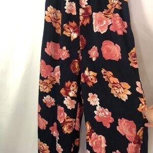 Strapless and Smocked back Navy Coral Floral with flowy pants Lightweight and airy Pit to pit 15” Waist 26” Inseam 30”
