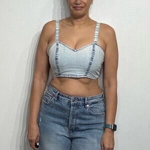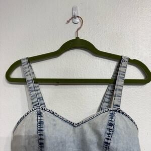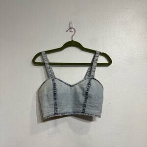 B.O.G. Collective Acid Wash Chambray Ruched Crop Top Sz M