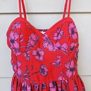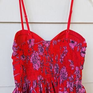 B.O.G. Collective Band of Gypsies Bustier Mini Dress Floral Red-Pink Smocked XS