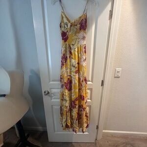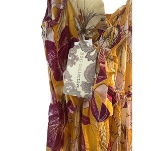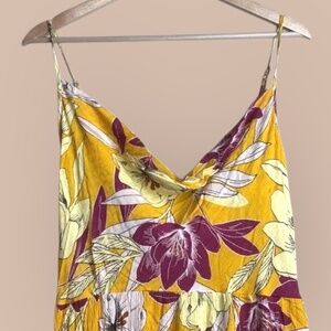 B.O.G Collective Boho Bold Yellow and Purple Floral Print, Spaghetti Straps.