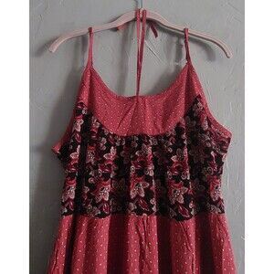 Beautiful tiered maxi dress with thin spaghetti straps, made of 100% viscose for a soft and lightweight feel. Features a boho-inspired design with contrasting floral print and dotted pattern in warm tones. Flowing and comfortable fit, perfect for summer days, vacations, or casual outings.