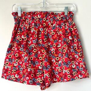 B.O.G Collective Junior Red Floral Elastic Waist Red Floral Shorts Size M