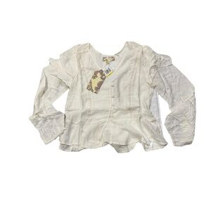 Stylish blouse with textured fabric. Features elegant button front. Ideal for versatile styling. BOG Collective White Textured Blouse Medium NWT