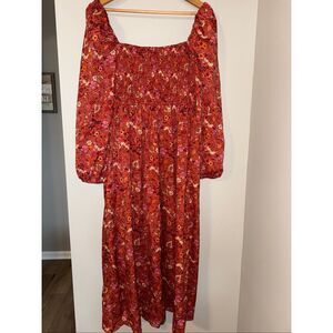 BOG Collective Size L Prairie Maxi Dress Orange Rust Floral Utah Mom Boho Modest