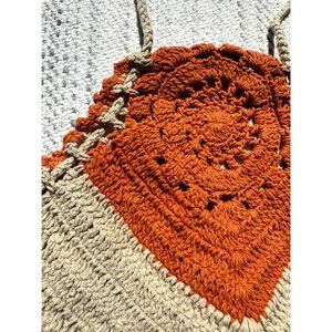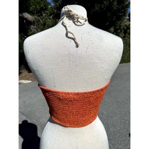 BOG Collective Top Medium Orange Cropped Crochet Halter Neck Twist 90's Womens