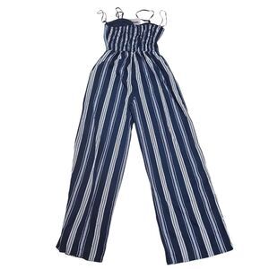 BOG Collective Womens NWT Blue White Stripe Jumpsuit Size S Preppy Boho Casual