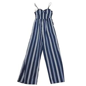 Grab the BOG Collective Womens NWT Blue White Stripe Jumpsuit Size S Preppy Boho Casual now!