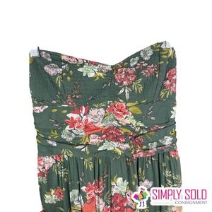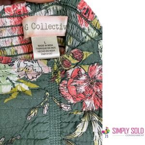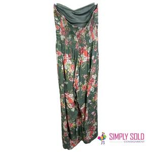 BOG Collective Womens Smocked Jumpsuit Green Floral Boho Wide Leg Cotton Size L