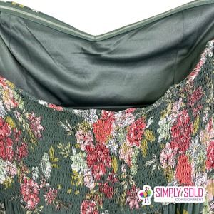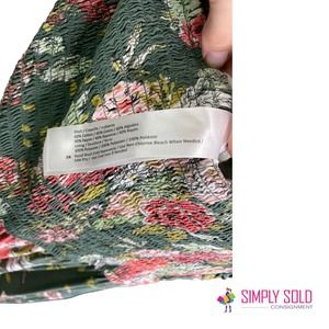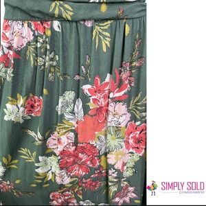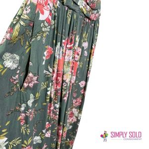 BOG Collective Women's Smocked Jumpsuit Green Floral Boho Wide Leg Cotton Size L