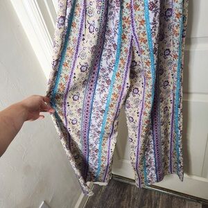 B*O*G Collective padded spaghetti strap wide-leg lavender bodice with floral print leg jumpsuit with POCKETS and elastic back. Size: S IN: B127.